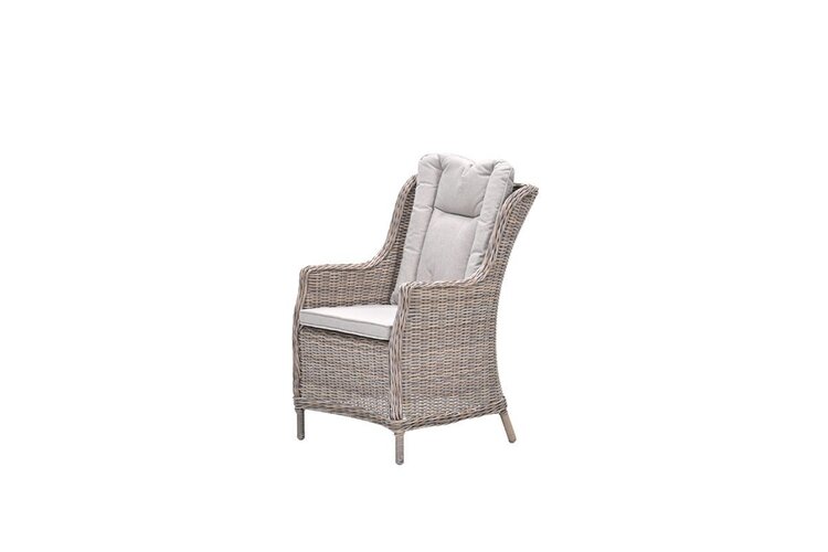De stoel wordt geleverd inclusief een comfortabel zit- en rugkussen. De kussens zijn voorzien van een waterafstotende coating, die ervoor zorgt dat enkele druppels water eenvoudig van de kussens af te kloppen zijn.
