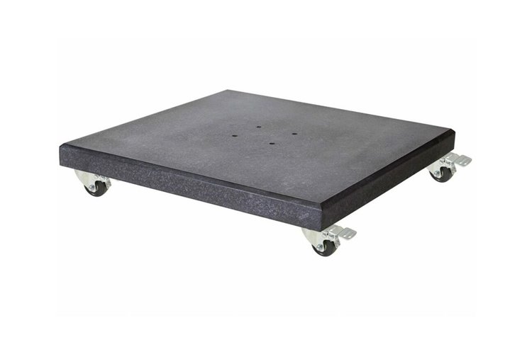 90 kg granietvoet met extra stevige, rembare wielen. Geschikt voor de Hawaii parasol of soortgelijke parasols.